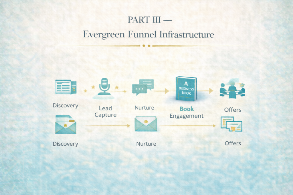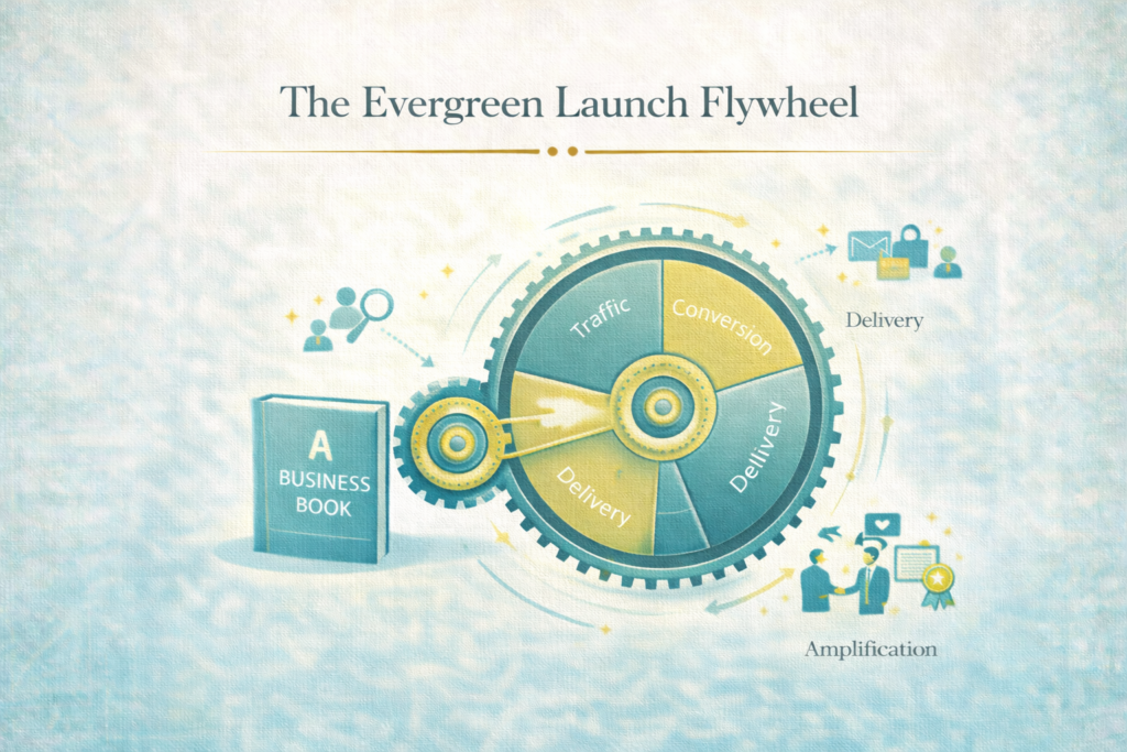 A book launch should initiate an evergreen system: a long-term marketing and conversion structure that continues to attract readers, generate leads, and create opportunities after the initial launch period ends.