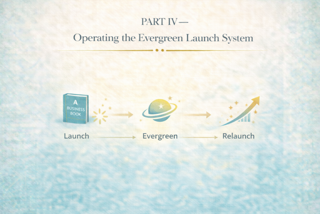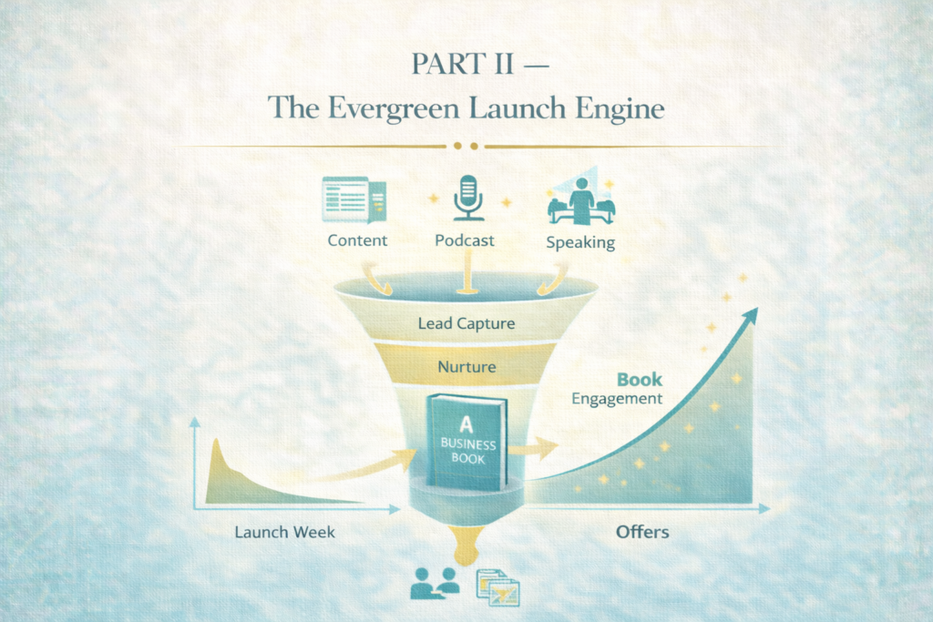Instead, they design an evergreen launch system—a structured engine that continues generating readers, leads, and opportunities long after the initial launch period ends.